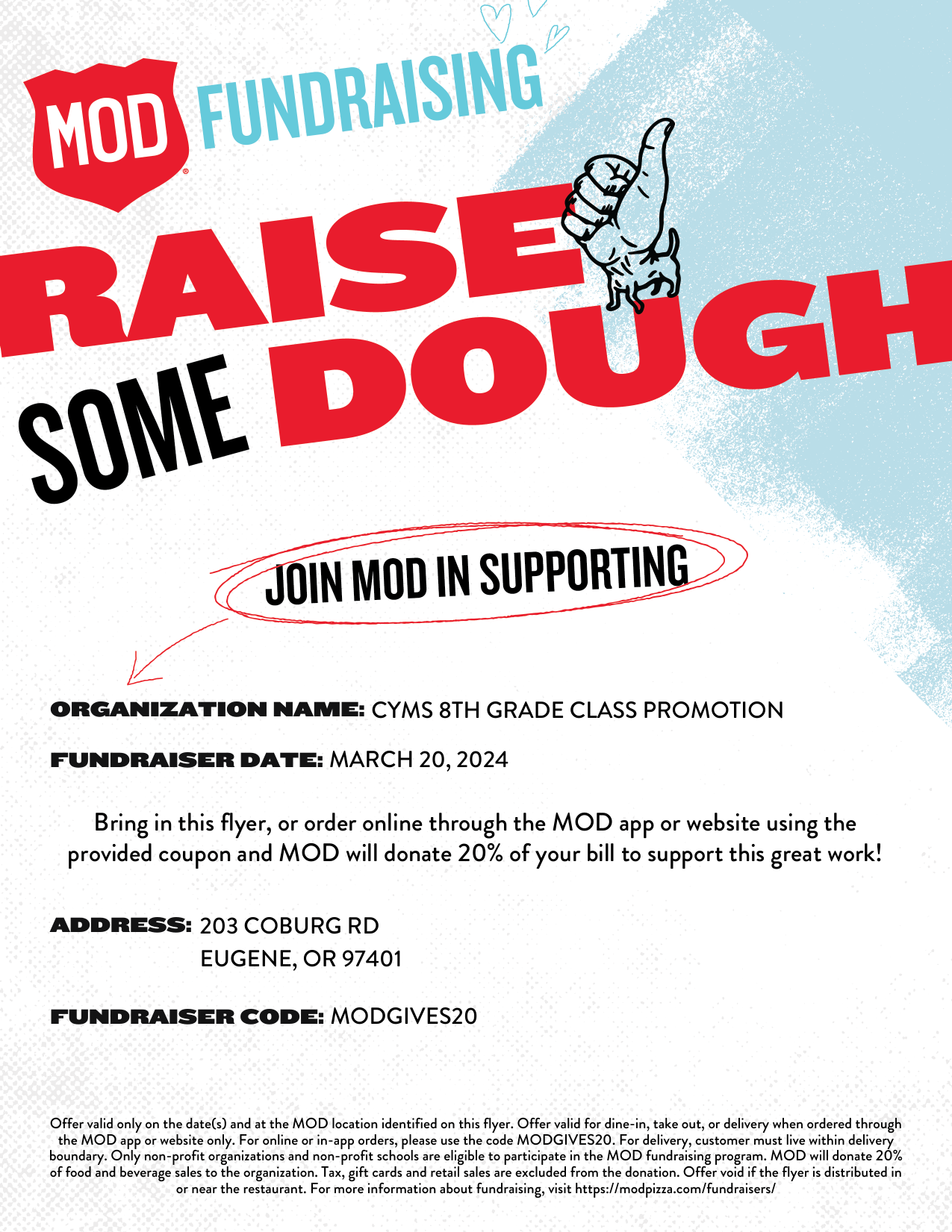 CYMS- MOD Pizza fundraiser on Wednesday!